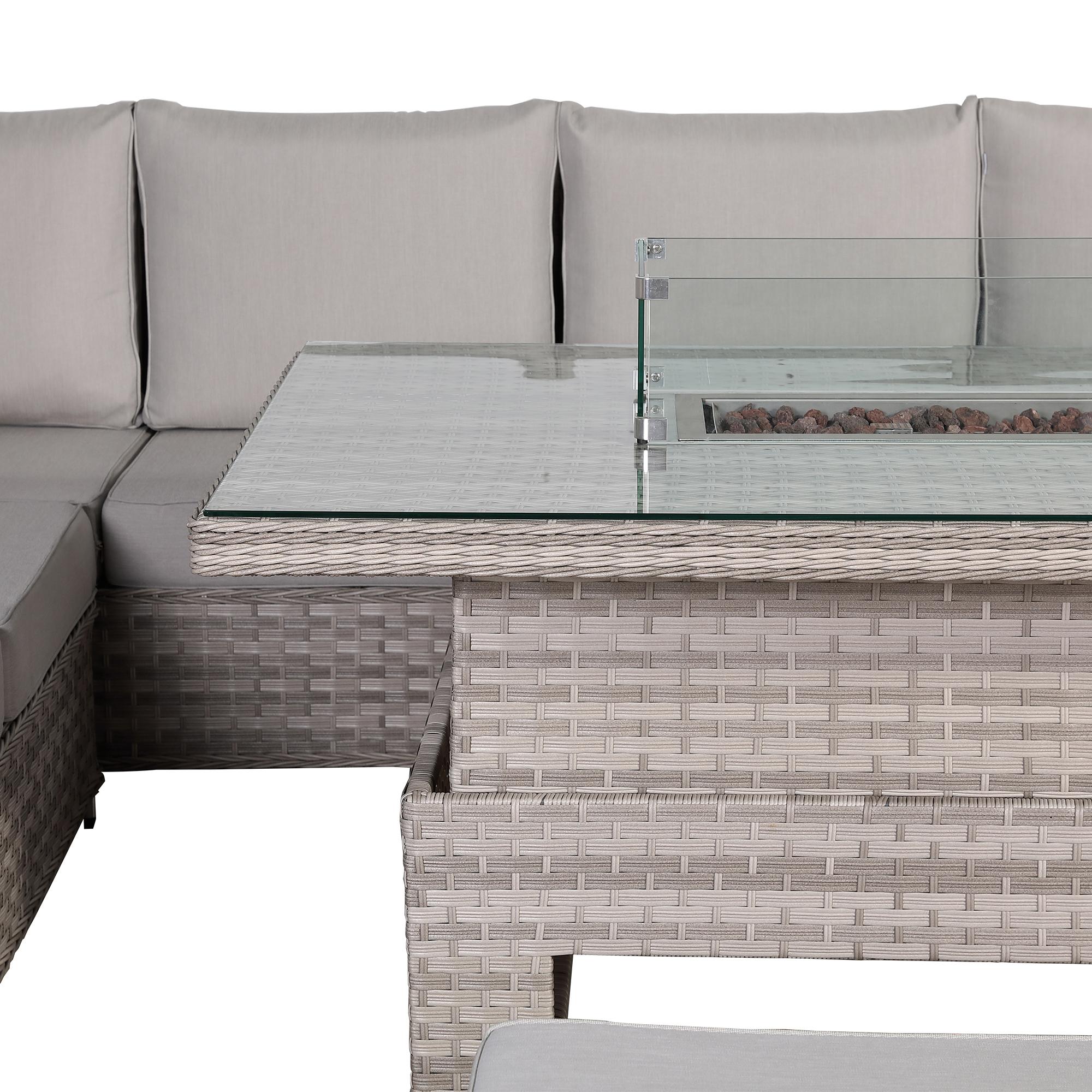- This set features a spacious adjustable table which adjusts effortlessly, adapting to casual coffee mornings or elegant al fresco dining