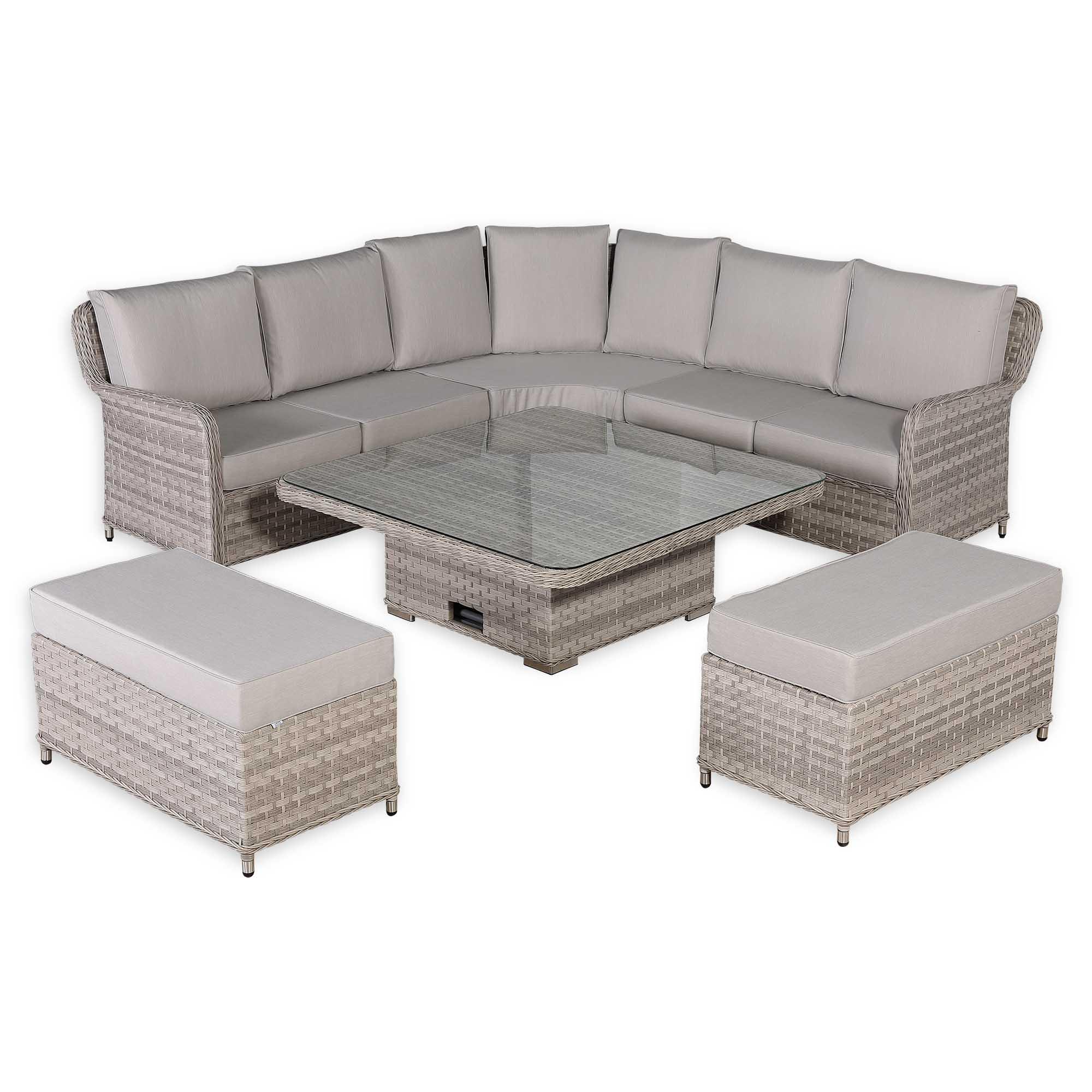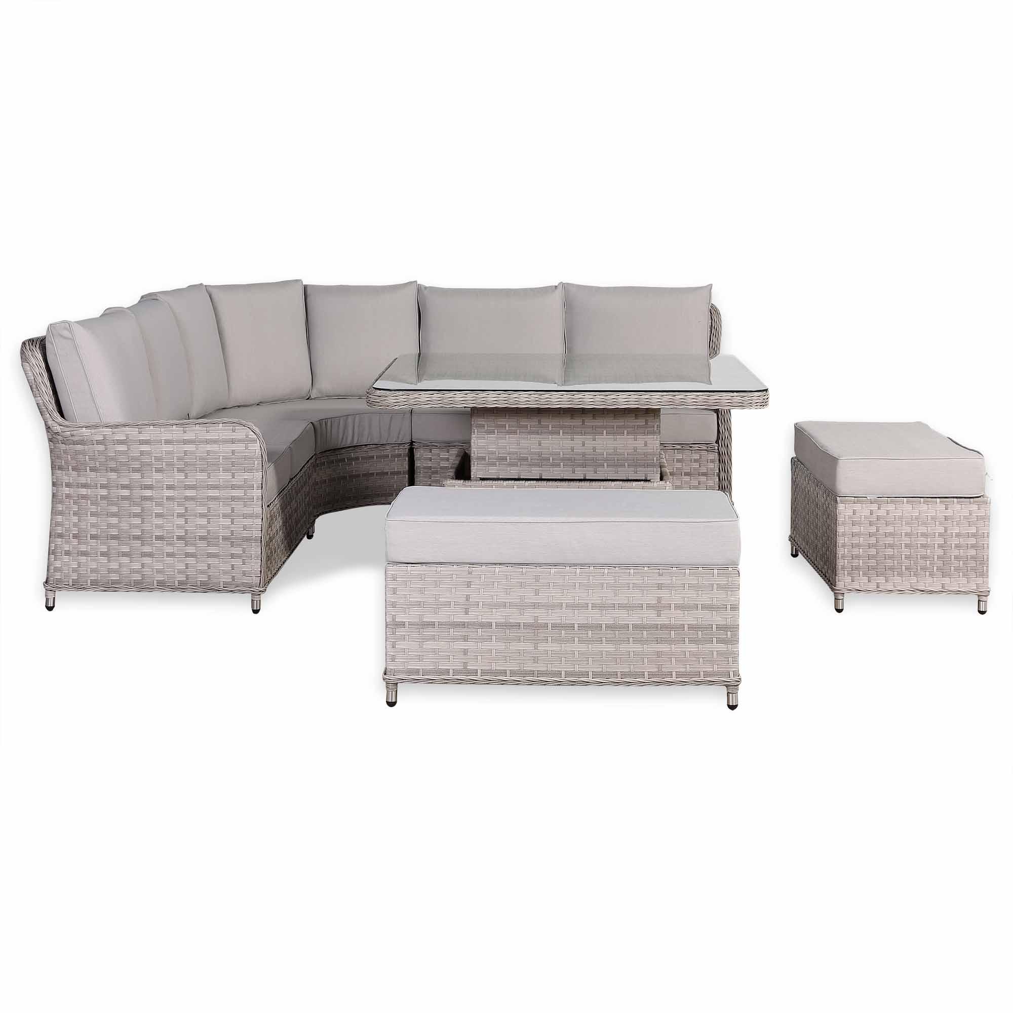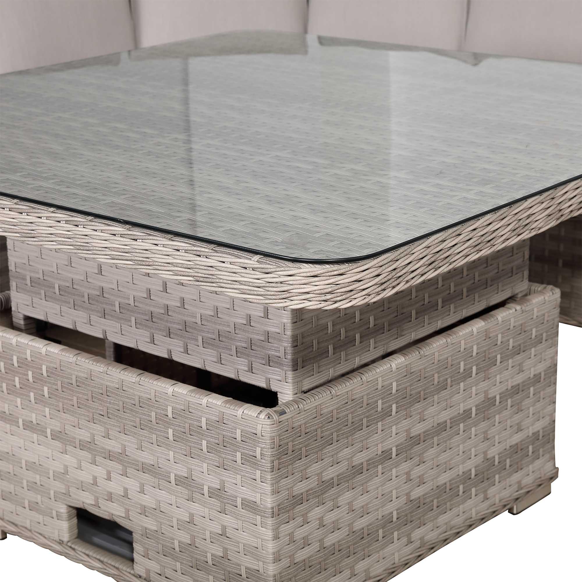 - This set features a spacious adjustable table which adjusts effortlessly, adapting to casual coffee mornings or elegant al fresco dining