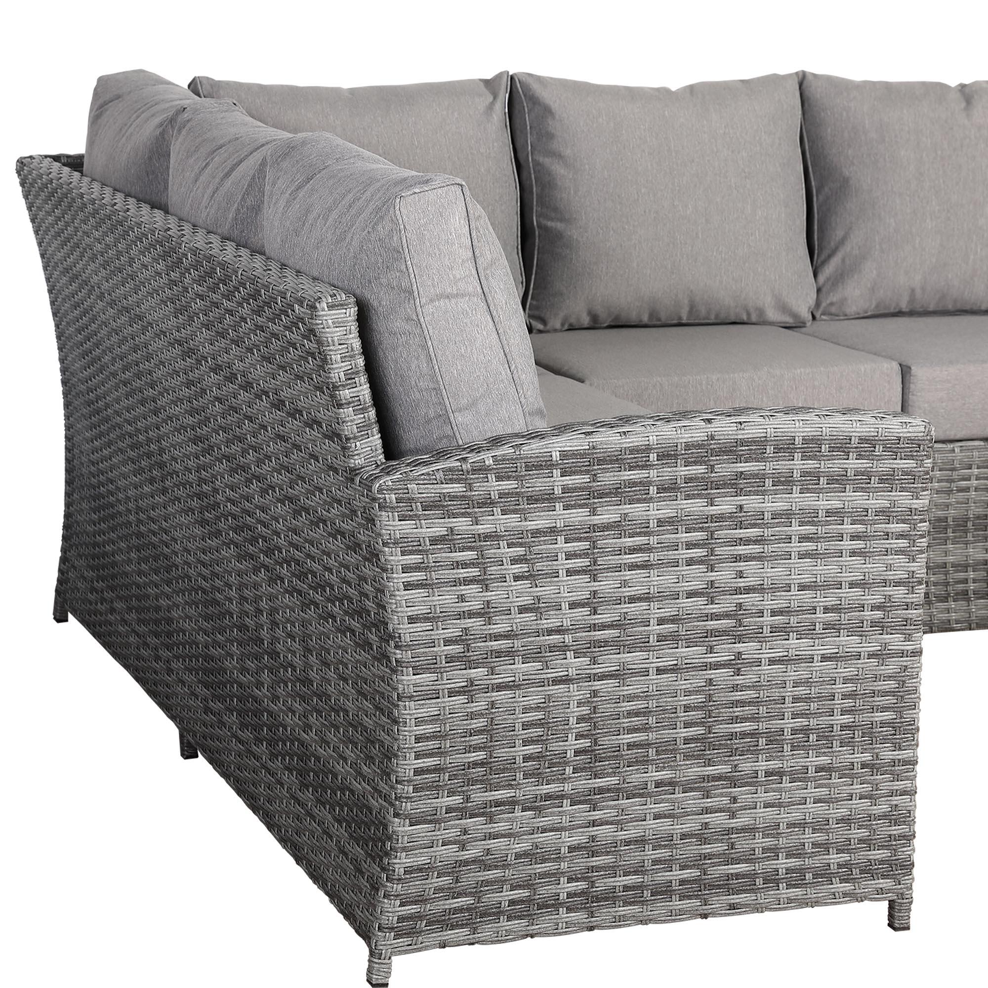 The Moncao LHF Hand Corner Sofa Set combines elegant design with durable woven craftsmanship, offering a stylish and comfortable seating solution for outdoor spaces.Enjoy the your garden in comfort either with a drink or while dining with the height adjustable table further increasing the flexibility of the set to fit all occasions.