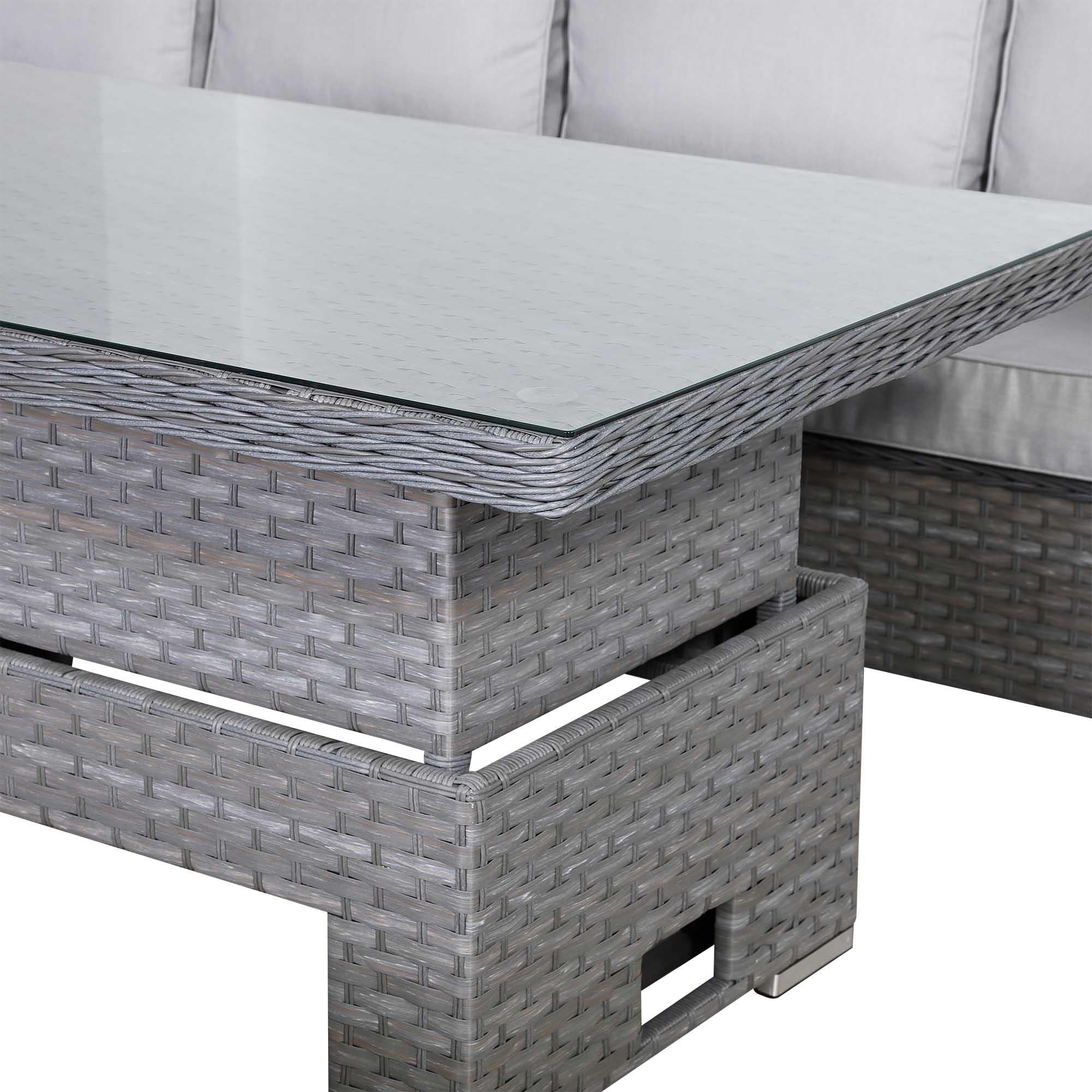 - This set features a spacious adjustable table which adjusts effortlessly, adapting to casual coffee mornings or elegant al fresco dining