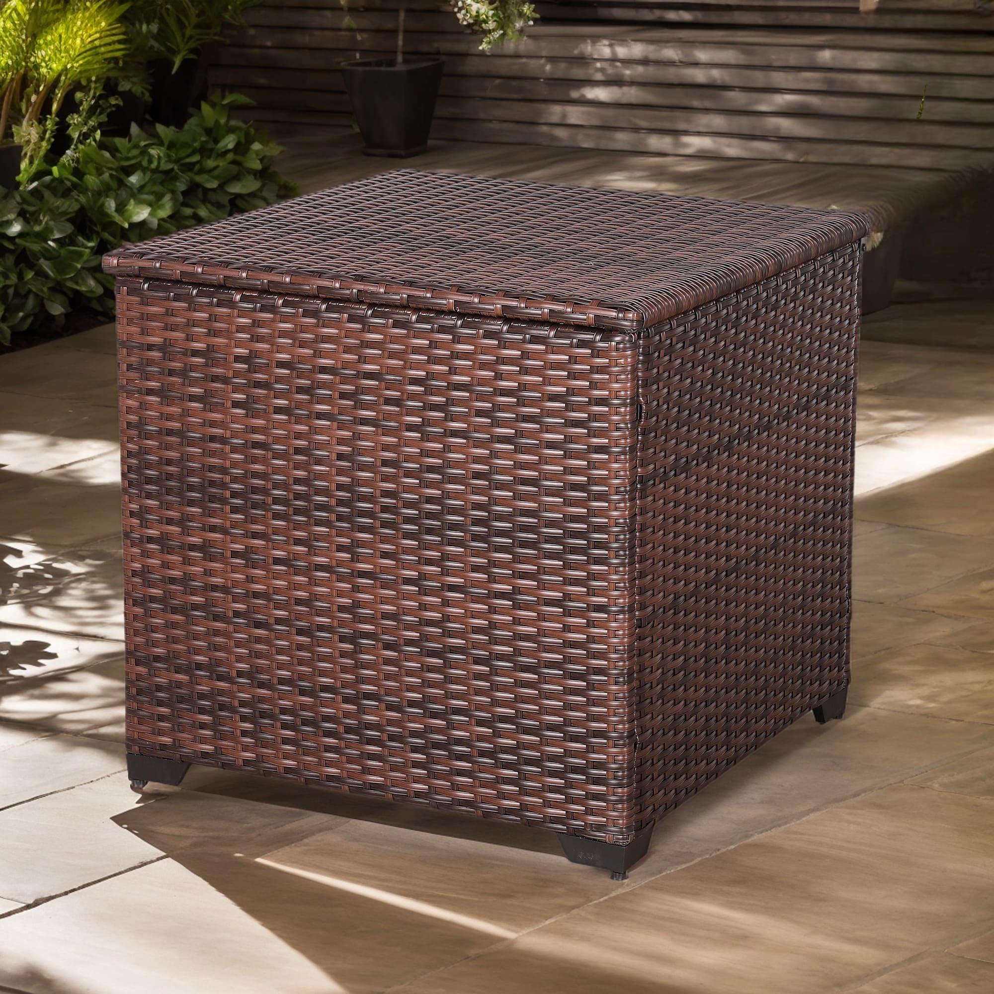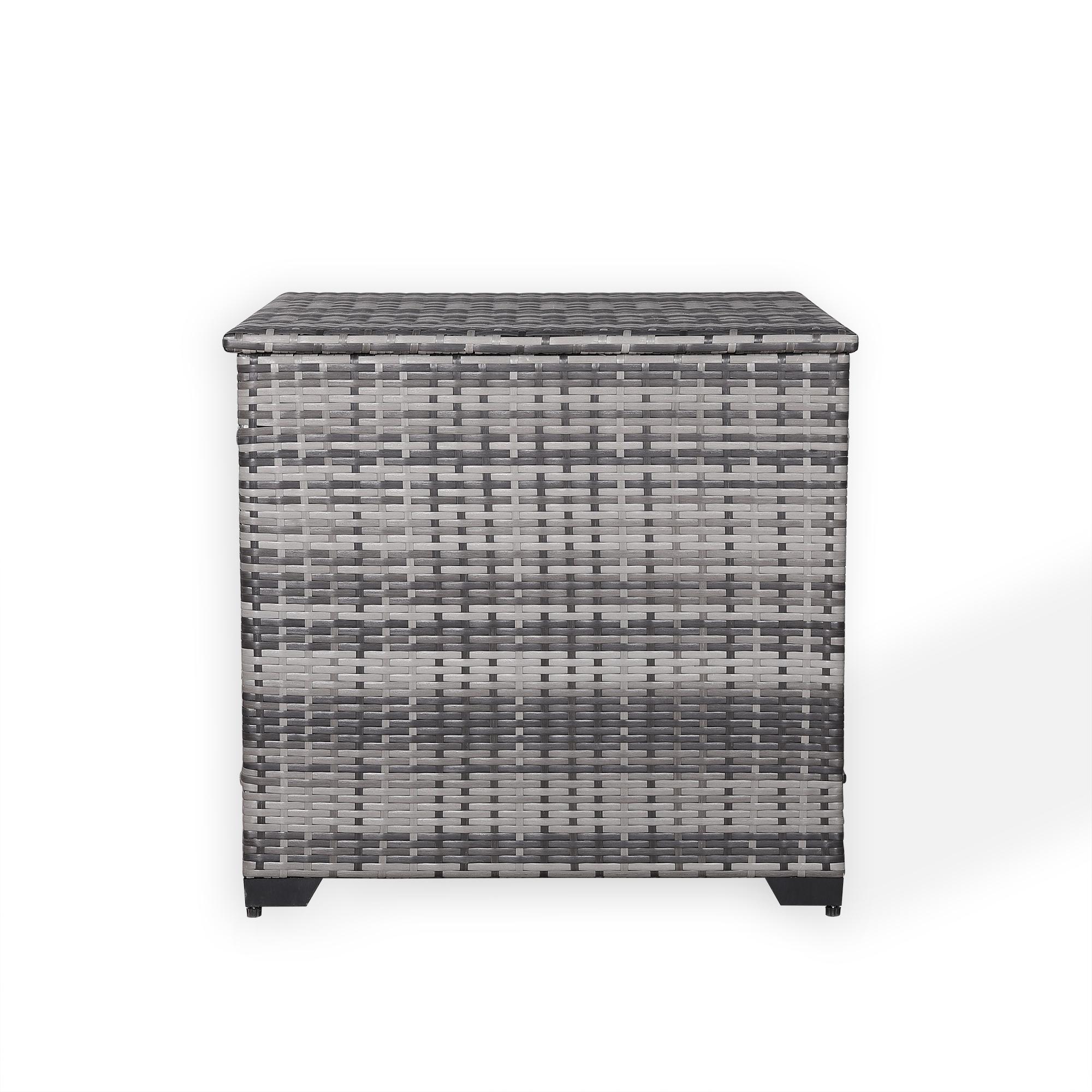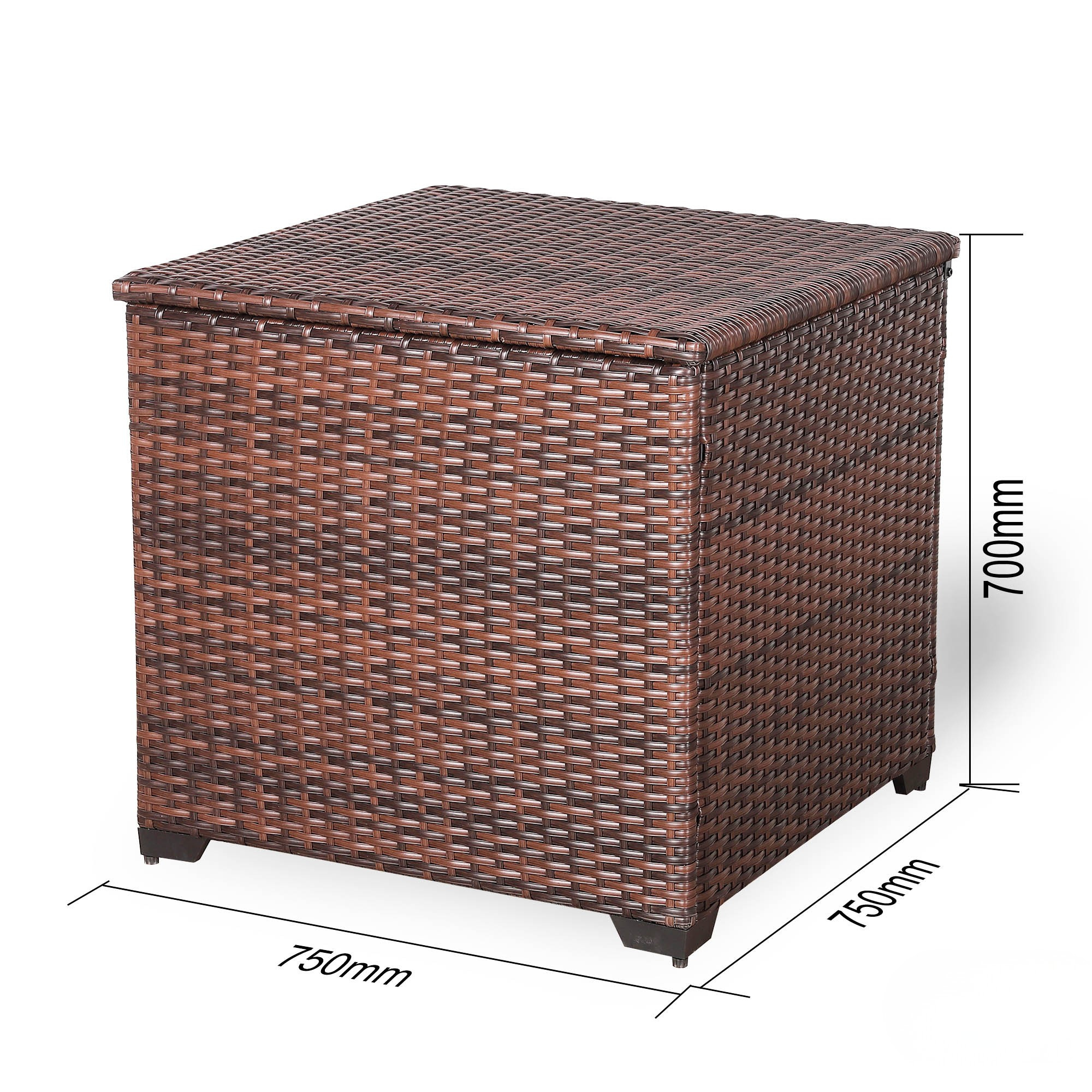 - The square polyrattan storage box with 318 Litre capacity from Rattan Republic offers enough space for cushions, seat pads and other garden accessories. The box is ideal as a suitable extension to our lounge sets.