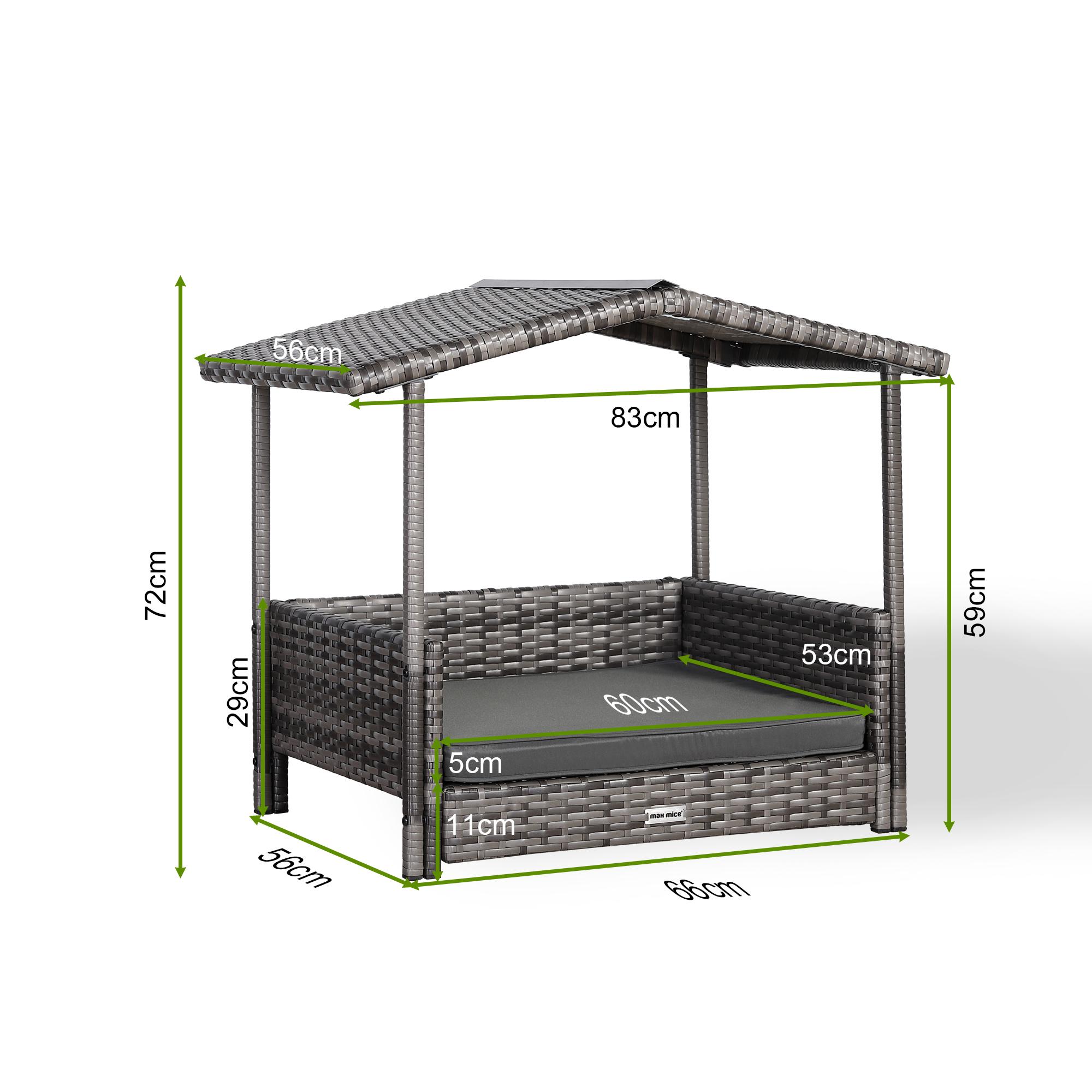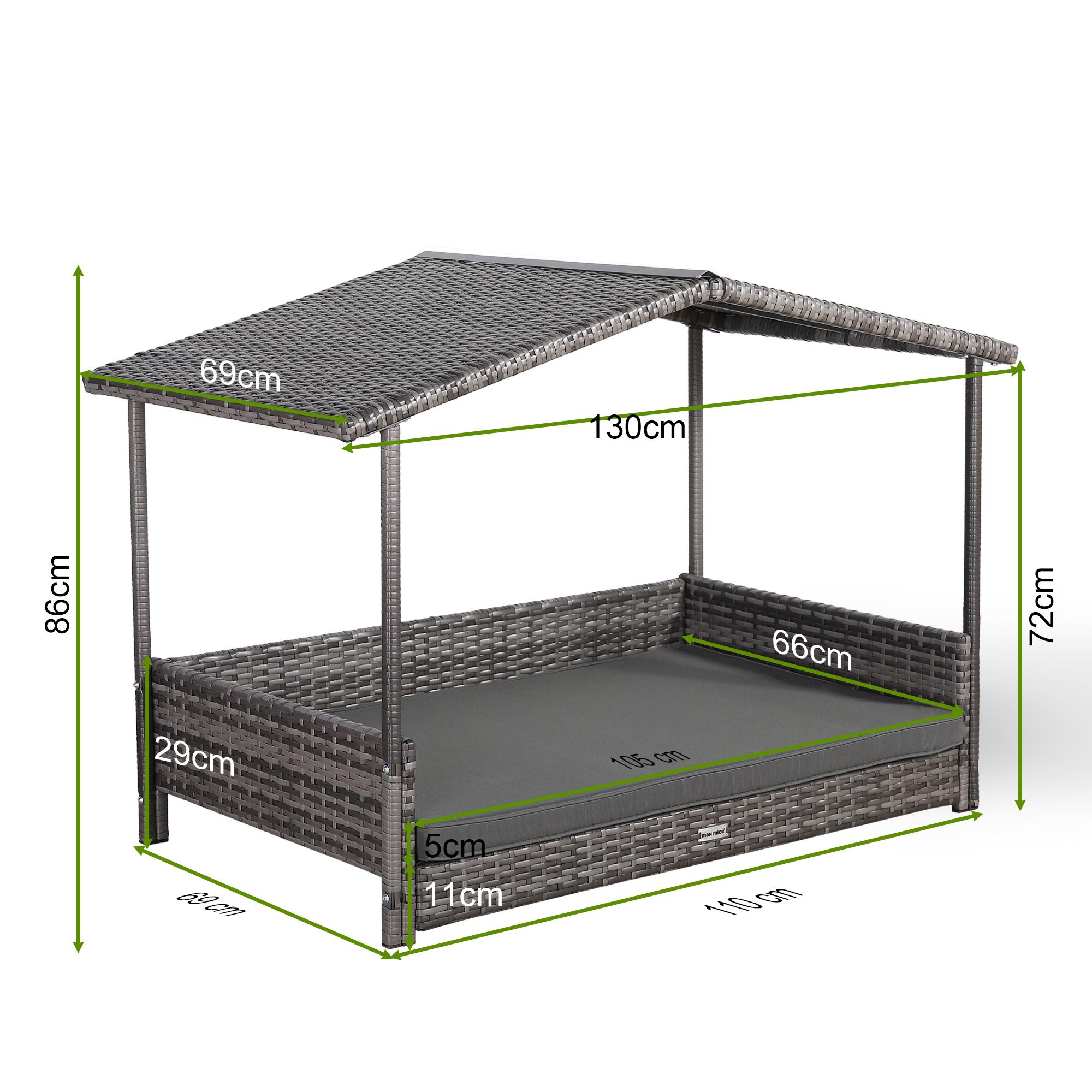 - RATTAN PET BED INFORMATION - Overall size: 103cm L x 69cm W x 73cm H, weight capacity: 100kgs. Suitable for most sizes of pets and can accompany them through important growth stages. All necessary accessories are included in the package, and you can quickly put them together with the detailed steps in the manual.