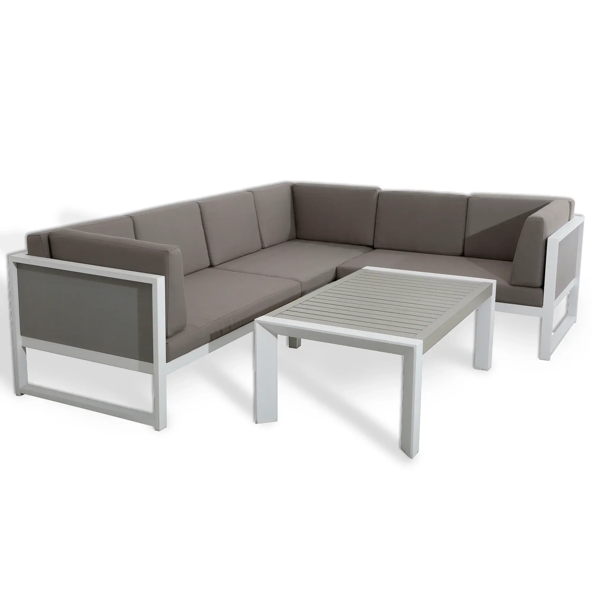 This Modern looking right hand sofa set sits 6 people comfortably .The grey cushions are premium quality and have machine washable covers.