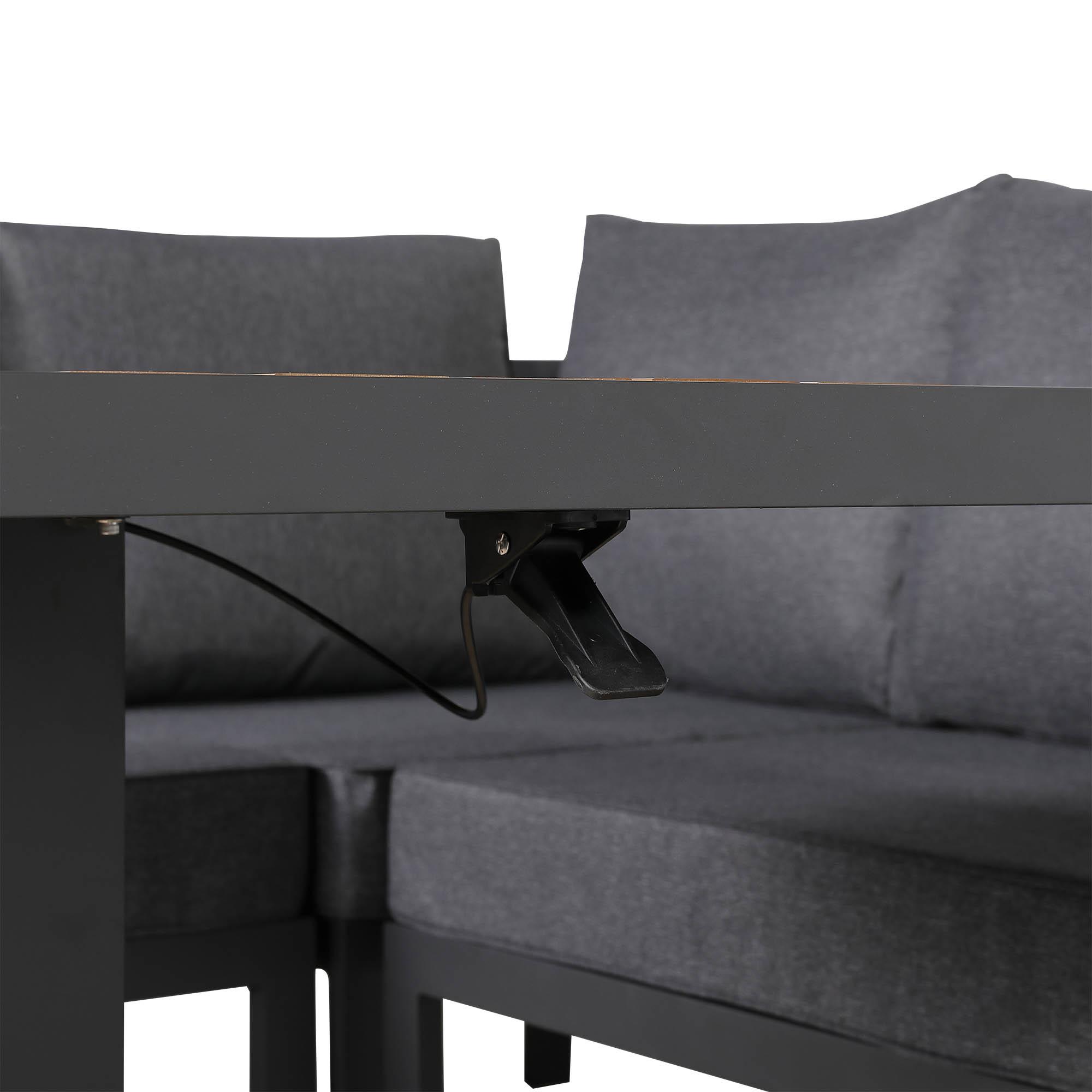 - This set features a spacious adjustable table which adjusts effortlessly, adapting to casual coffee mornings or elegant al fresco dining