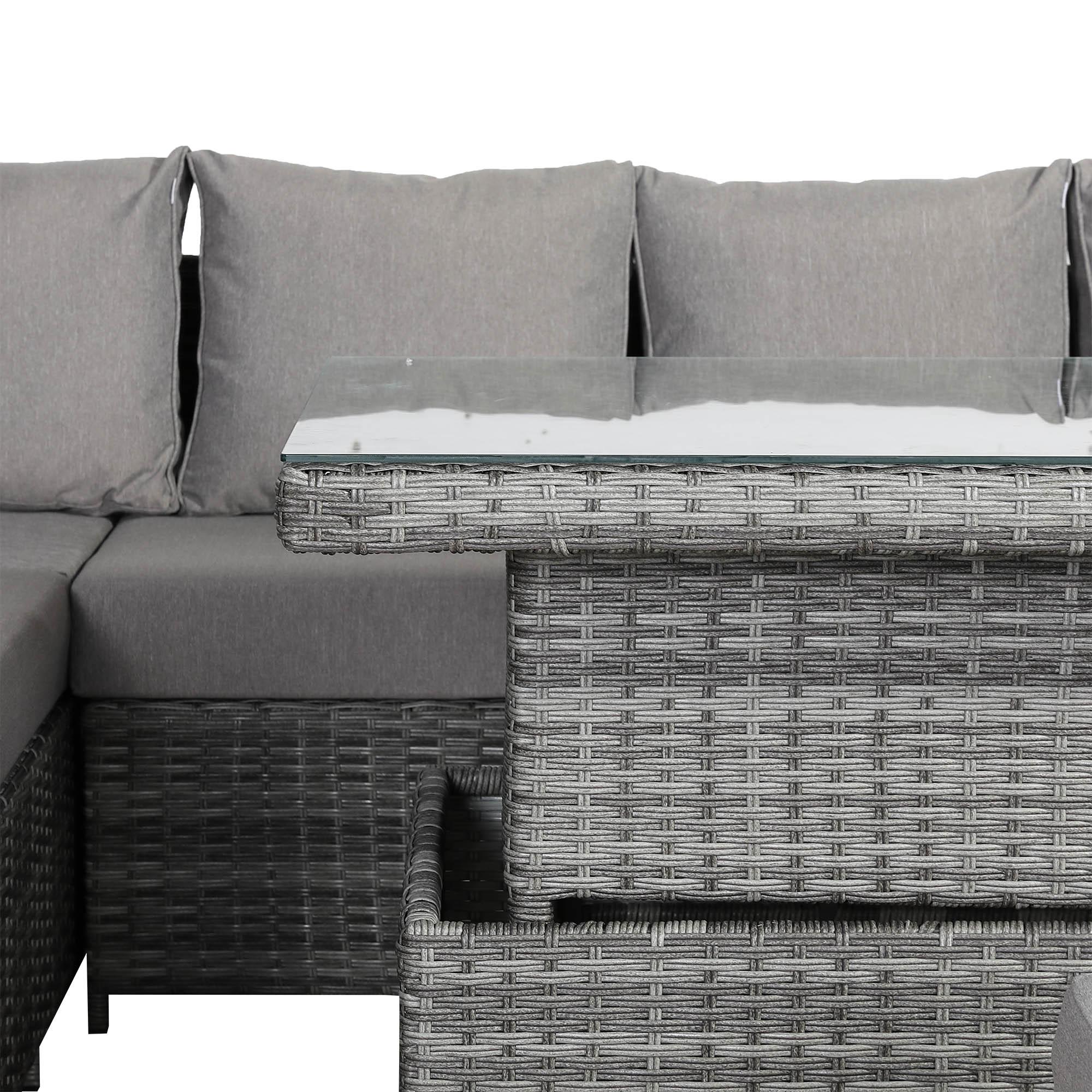 The Moncao LHF Hand Corner Sofa Set combines elegant design with durable woven craftsmanship, offering a stylish and comfortable seating solution for outdoor spaces.Enjoy the your garden in comfort either with a drink or while dining with the height adjustable table further increasing the flexibility of the set to fit all occasions.